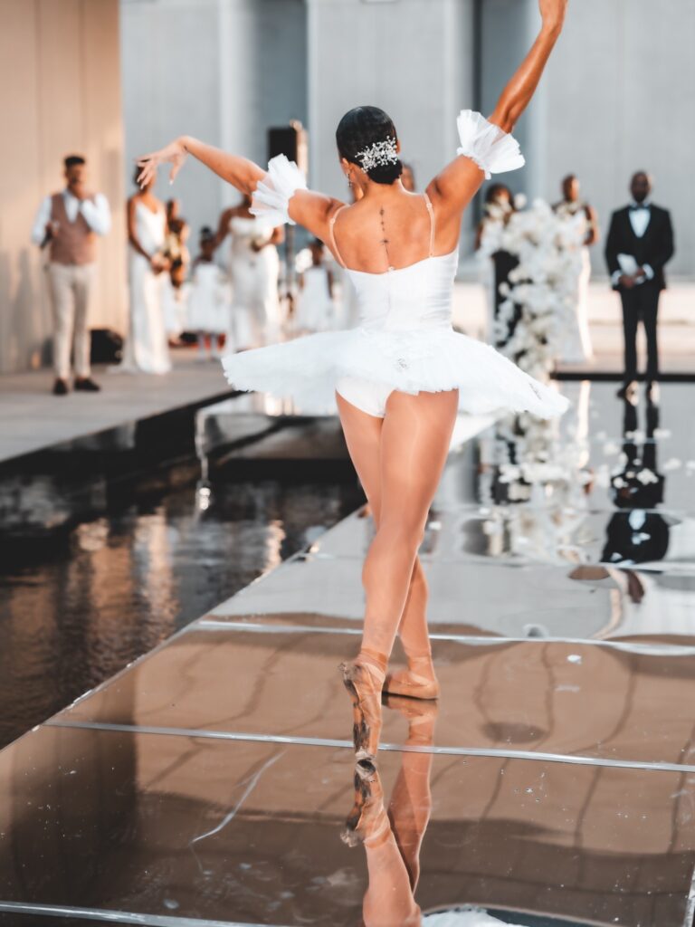 The idea of doing ballet at weddings came originally came from my mom. She always told me that the two would combine beautifully and would be something extraordinary. My very first Flowerina performance came about when I received a DM from a bride on Instagram asking me to perform at her wedding reception back in June of 2020.